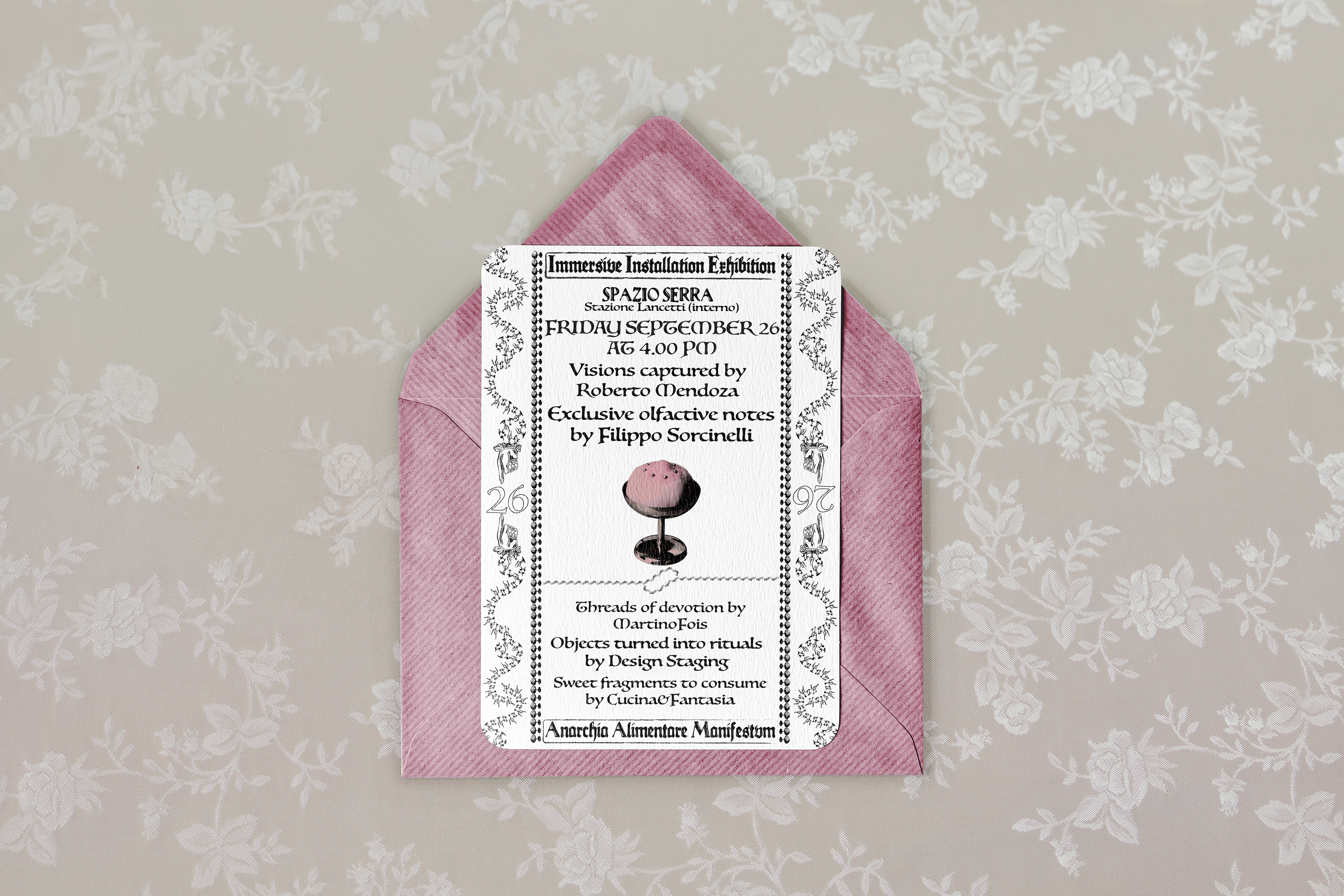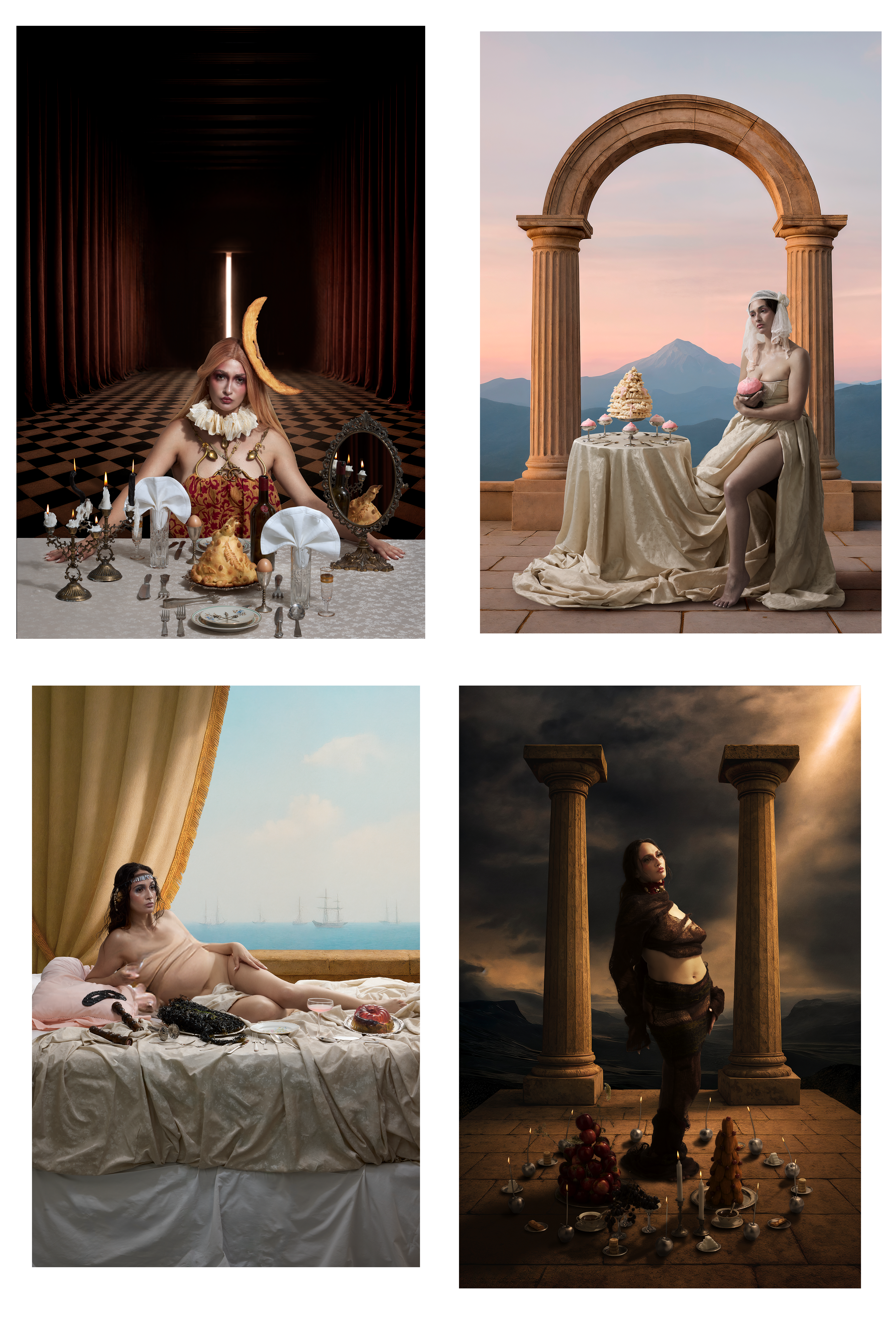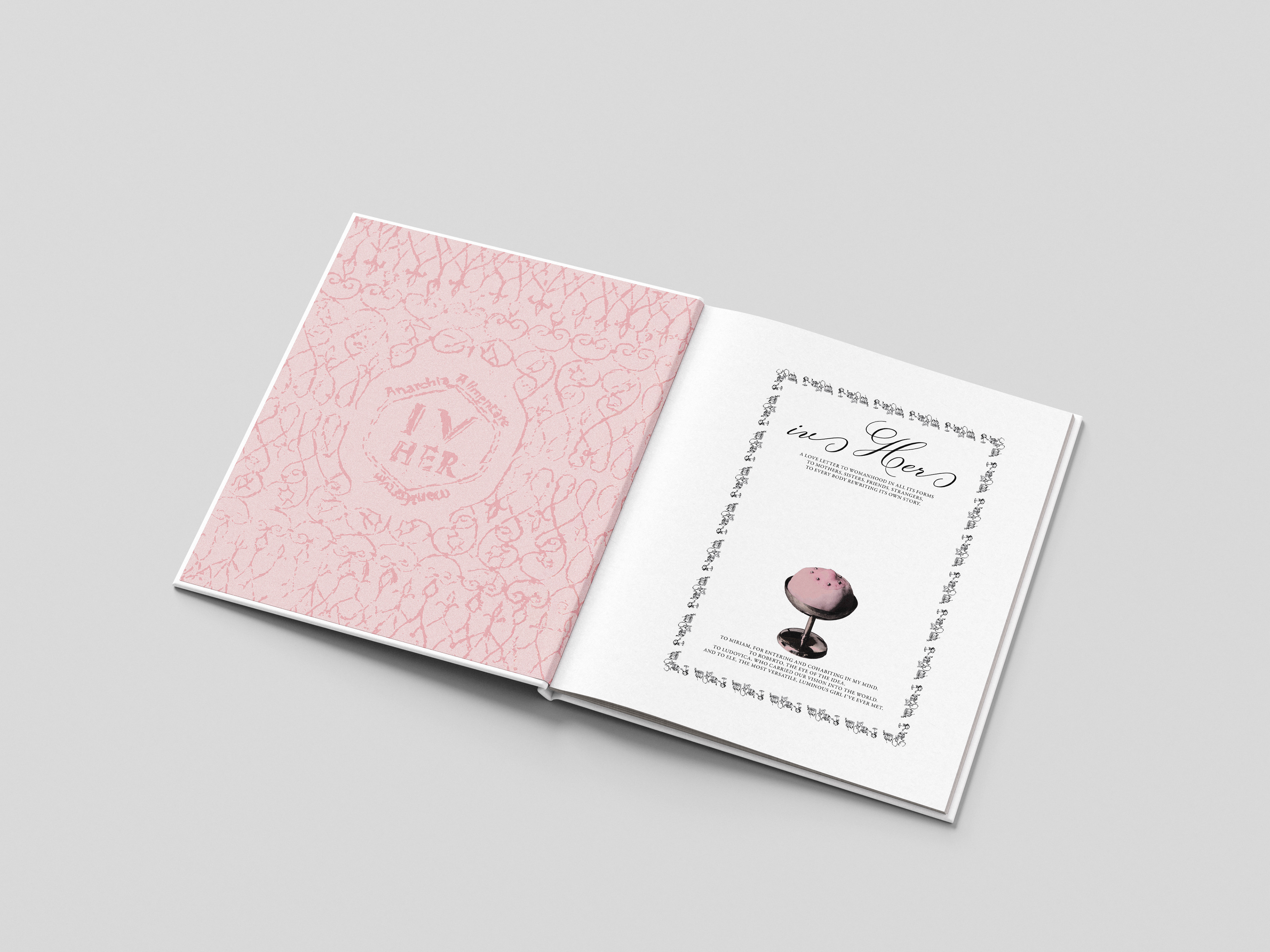Released on September 26 and presented at Spazio Serra with the immersive exhibition, this hardcover book unfolds as a four-course narrative: four women, four letters, four acts. Each chapter serves a dish of femininity, intimacy, and quiet rebellion, inviting you to sit at their table and taste the weight of what they carry—desires, wounds, tenderness, and power.